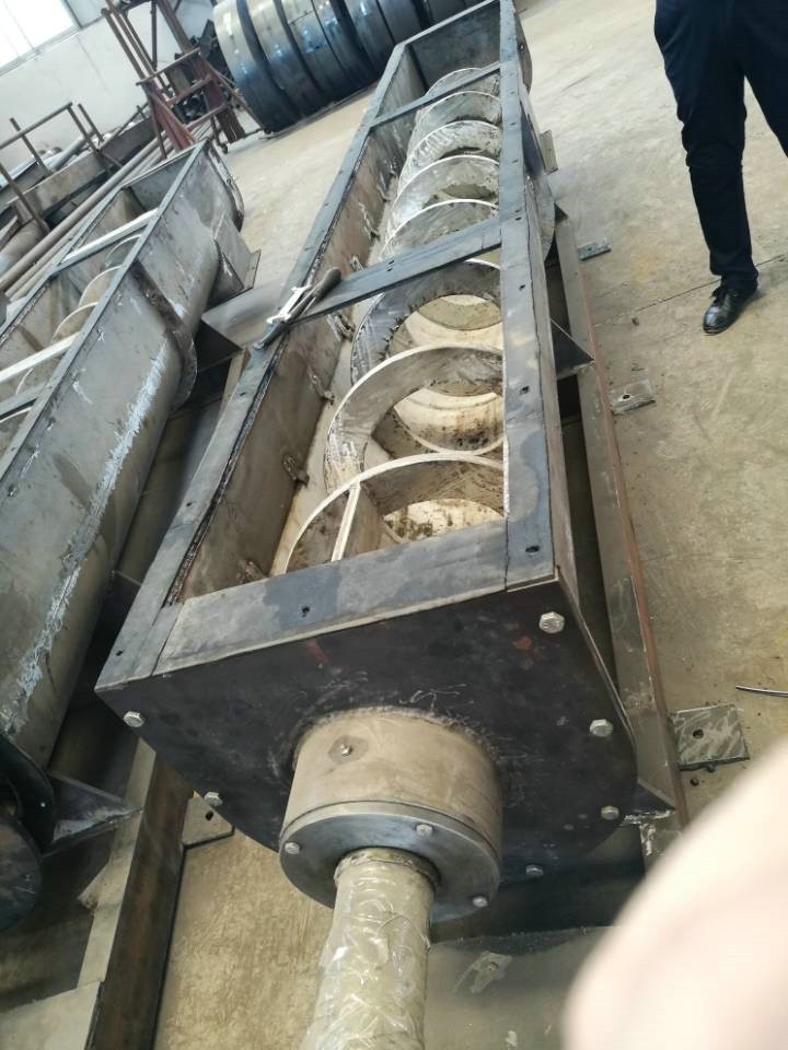 無軸螺旋輸送機(jī)主要由驅(qū)動裝置、頭部裝配、機(jī)殼、無軸螺旋體、槽體襯板、進(jìn)料口、出料口、機(jī)蓋(需要時)、底座等組成。